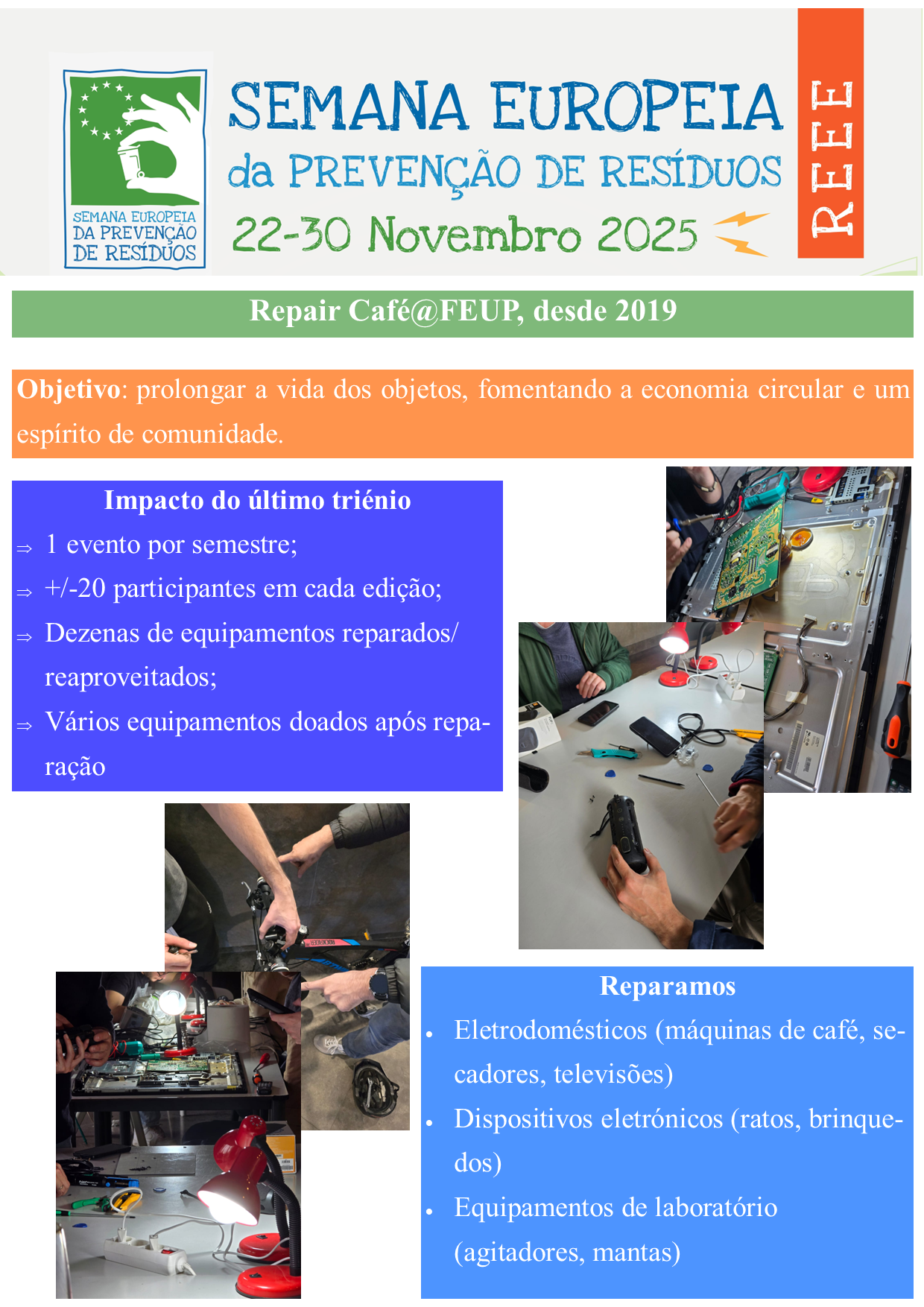 Iniciativas como o Repair Café enquadram-se, assim, no âmbito da Semana Europeia da Prevenção de Resíduos (EWWR).